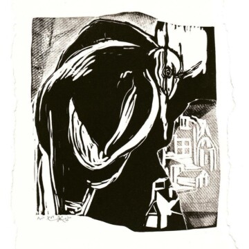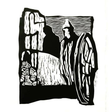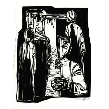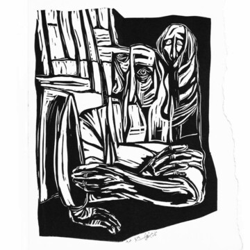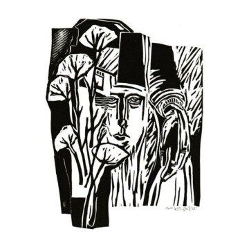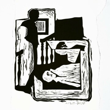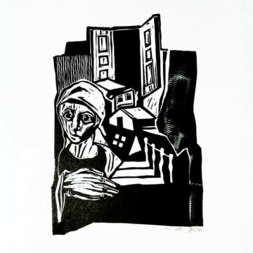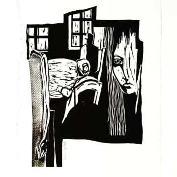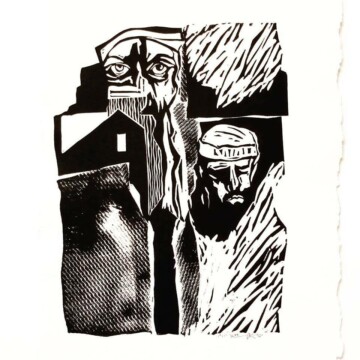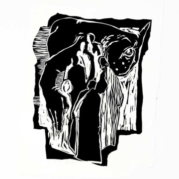Illustration for the book “Money and the Devil” by Leo Tolstoy. lino printing technique. Illustrator and printmaking: Farhad Alizadeh Piraghaji